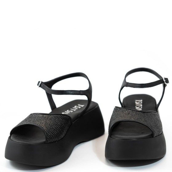 Γυναικείο πέδιλο Platform TSITSIVAS.Σύνθεση: Δέρμα καστόρι. Σόλα rubber και πλατό ντυμένο με τριχιά. Ύψος τακουνιού 7,5 cm. Υψος φιάπας 2 cm Μεταλλική αγκράφα. Δερμάτινη εσωτερική επένδυση και δερμάτινος πάτος. Φόρμα κανονική.