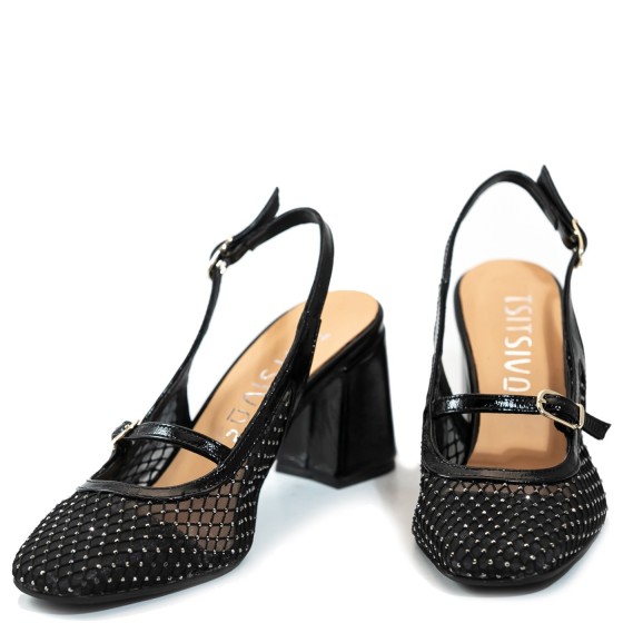 Xειροποίητα πολυτελή υποδήματα ελληνικής κατασκευής από Δέρμα Λουστρίνι με Μεσαίο τακούνι.
